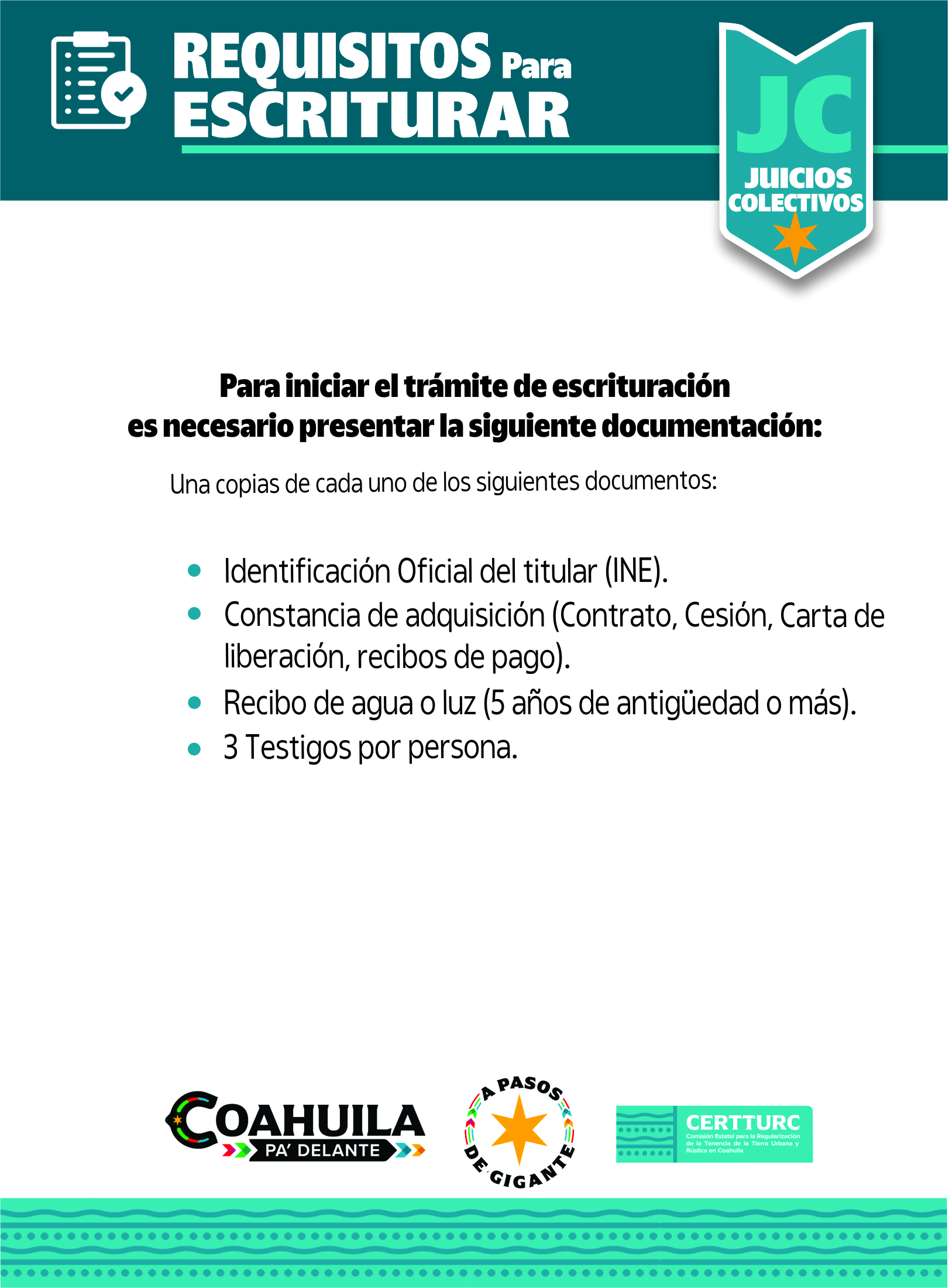 Tiene como objetivo ejercer las acciones y solicitudes de usucapión, prescripción no contenciosa, inmatriculación y registro de posesión, de acuerdo con la normatividad civil vigente en el Estado de Coahuila, con la finalidad de regularizar y escriturar predios que formen parte de asentamientos humanos irregulares, cuyos poseedores justifiquen su estancia legal apta para usucapir.